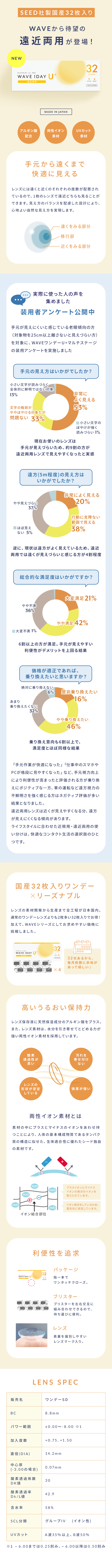 SEED社製造による国産1日使い捨てレンズ(32枚入り)WAVEから遠近両用が登場!